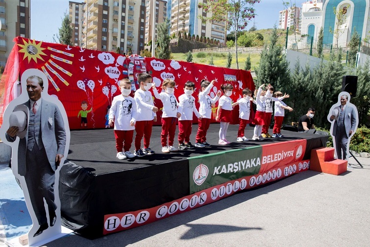 Pandemi nedeniyle bu yıl 23 Nisan’da geniş katılımlı etkinlikler yapılamadı ancak Karşıyakalı çocuklar Ulusal Egemenlik ve Çocuk Bayramı’nı evlerinde, okullarında ve parklarda coşkuyla kutladı. Karşıyaka Belediyesi’ne bağlı 5 anaokulunun tamamında törenler gerçekleştirildi. Öğrenciler hazırladıkları özel programlarla hem 23 Nisan’ı kutladı hem de Ulu Önder Atatürk’ü sevgi, saygı ve minnetle andı. Okul bahçelerini bu anlamı gün için özel olarak süsleyen çocuklar; törelerde şiir ve şarkılar seslendirdi, gösteriler sundu.