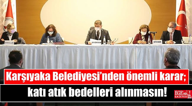 Karşıyaka Belediyesi’nin pandemi döneminde dükkanı kapatılan kahveci esnafına destek olmak amacıyla nakdi yardım yaptığı esnada İzmir Kahveciler Odası Başkanı İsmail Hakkı Kırdı’nın kapalı kaldığımız dönemde su faturalarına yansıyan katı atık toplama bedeli alınmasın ricası Plan, Bütçe ve Hukuk Komisyonları tarafından Karşıyaka Belediye Meclis toplantısı gündemine taşındı. Söz konusu karar Karşıyaka Belediye Meclisi’nde oy birliği ile kabul edildi. Kararın İzmir Büyükşehir Belediye Meclisi’nde de onaylanıp kabul edilmesinin ardından hayata geçirilmesi hedefleniyor.