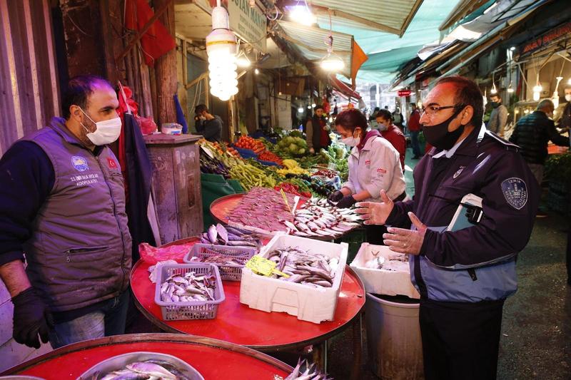 Havra esnafı kurallara uyuyorHavra Sokağı’nda alınan önlemlerin yanı sıra zabıta ekipleri sokak esnafına da dikkat edilmesi gereken kurallar konusunda bilgi verdi. Maske ve eldiven kullanımı konusunda taviz verilmemesini isteyen zabıta, ellerin sık yıkanması, ürünlerin elle seçtirilmemesi, sosyal mesafenin korunması gibi önlemlerin önemine dikkat çekti. Ayrıca Havra Sokağı’nın her gün en geç 19.00’da kapanacağı kararı da hatırlatıldı. Havra Sokağı’nın ekmek kapıları olduğunu dile getiren esnaf da kurallara harfiyen uyacaklarının sözünü verdi.#EvdeKal KonakHavra Sokağı’nda sıkı bir denetim uygulayan Konak Belediyesi zabıta ekipleri, bariyerlere ek olarak sokağa giriş çıkış yapan vatandaşlar için dezenfektan ve maske de bulunduruyor. Zabıta personeli, esnafla beraber vatandaşı da bilgilendiriyor. Zorunlu haller dışında evden çıkılmaması gerektiği vatandaşa hatırlatılırken, alışveriş sırasında uymaları gereken hijyen ve sosyal mesafe kuralları da anlatılıyor.