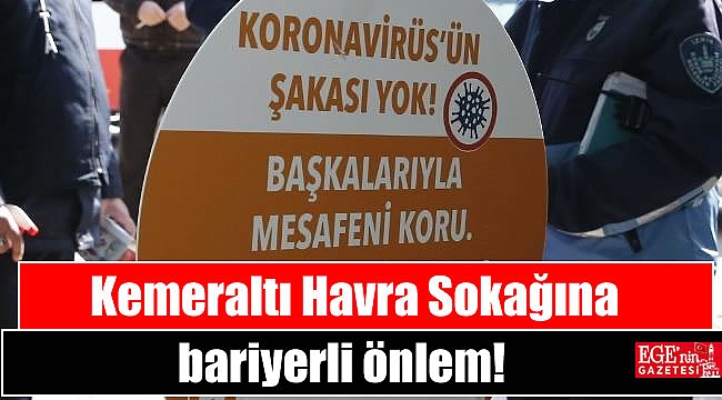 Konak Belediyesi yeni tip korona virüsü (Covid-19) ile mücadele kapsamında Kemeraltı Çarşısı’nın en işlek sokağı olan Havra Sokağı’nın giriş ve çıkışında bariyerli denetim uygulamasına geçti.Kemeraltı Çarşısı’nda, taze gıda ve balık denince akla ilk gelen yer olan Havra Sokağı’nın giriş ve çıkışlarında bariyerli denetim uygulaması başladı. Konak Belediyesi’nin salgın önlemleri kapsamında başlatılan uygulama ile Havra Sokağı’nda güvenli alışveriş ortamı sağlanarak esnafın ve vatandaşın sağlığı için önlemler artırıldı. Konak’taki pazaryerlerinde olduğu gibi Havra Sokağı’na giriş çıkışlar da bariyer sistemi ile kontrol altına alındı.