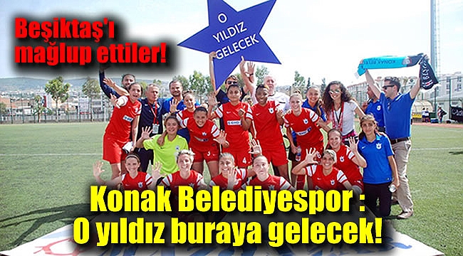 Kadınlar 1. Futbol Ligi’nde şampiyonluk mücadelesi veren İzmir temsilcisi Konak Belediyespor evinde ağırladığı Beşiktaş’ı 5-1 gibi farklı bir skorla geçti. Geçen hafta Ataşehir Belediyespor’u aynı skorla mağlup eden mavi-beyazlı takım şampiyonluğun en büyük favorisi olduğunu gösterdi. Maç sonu galibiyeti kutlayan futbolcular ‘O Yıldız Gelecek’ yazılı pankartla zafer pozu verdi. Üst üste dört sezondur şampiyonluk yaşayan İzmir temsilcisi bu sezonu da şampiyon tamamlaması halinde futbol liglerinde uygulanan 5 şampiyonluğa 1 yıldız uygulaması kapsamında ilk yıldızını kazanmış olacak.