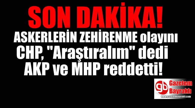 Manisa'daki askerlerin zehirlenme olayını CHP, "Araştıralım" dedi; AKP ve MHP reddetti! CHP'li Mazlum Nurlu, son yaşanan zehirlenme olayı üzerine yeniden önerge vereceklerini söylediManisa'da bir ay içinde 4 kez meydana gelen zehirlenme olayı ile ilgili CHP'li vekillerin ‘Bu şirketi ve zehirlenme olayını araştıralım' önerisi TBMM'de AKP-MHP'li vekillerin oylarıyla reddedildi.Sözcü'de yer alan habere göre, CHP'li Tur Yıldız Biçer, şirket sahibinin AKP Amasya Milletvekili Haluk İpek'in ‘dostu' olduğunu Meclis kürsüsünden açıkladı.Zehirlenme olayları peş peşe yaşanınca CHP Manisa milletvekilleri Özgür Özel, Mazlum Nurlu ve Tur Yıldız Biçer, 30 Mayıs ve 13 Haziran tarihlerinde bu konuyu Meclis gündemine taşıdı. AKP-MHP tarafından reddedilen önergede CHP'li Nurlu, “Kışlalarda yaşanan zehirlenme vakalarıyla ilgili, Genelkurmay Başkanlığı resmi makam yetkilileri tatmin edici bir açıklama yapmamıştır” dedi.CHP'li Mazlum Nurlu, son yaşanan zehirlenme olayı üzerine yeniden önerge vereceklerini söyledi. Nurlu, “Araştırma önergesini reddeden AKP milletvekilleri dün ve bugün yaşanan zehirlenmelerden sorumludurlar. Askerlerin neden zehirlendiklerinin araştırılması ve ihale alan şirketlerin siyasi bağlantılarını ortaya çıkarmak amacıyla komisyon kurulması için yeni bir önerge vereceğiz” diye konuştu. Manisa' da Asker zehirlenmelerinin tüm detayları23 Mayıs tarihinde Manisa 1'inci Piyade Eğitim Tugay Komutanlığı Albay Arif Seyhun Kışlası'nda 1049 asker gıda zehirlenmesi nedeniyle hastaneye kaldırılmış, er Hüsnü Özel yaşamını yitirmişti. Bu olaydan 4 gün sonra, 27 Mayıs tarihinde bu kez, Kırkağaç 6'ncı Jandarma Komando Er Eğitim Alayı'nda zehirlenme vakası yaşanmış, 70 asker hastaneye kaldırılmıştı. Önceki gece 16 Haziran 2017'de Manisa 1'inci Piyade Er Eğitim Tugay Komutanlığı General Seyfettin Çalbatur Kışlası'nda 69 asker hastanede tedaviye alınmıştı. 17 Haziran 2017'de önce 69 askerin daha sonra 200 sayının en son 731 askere çıkarak zehirlenme sebebiyle hastaneye kaldırıldığı bildirildi.