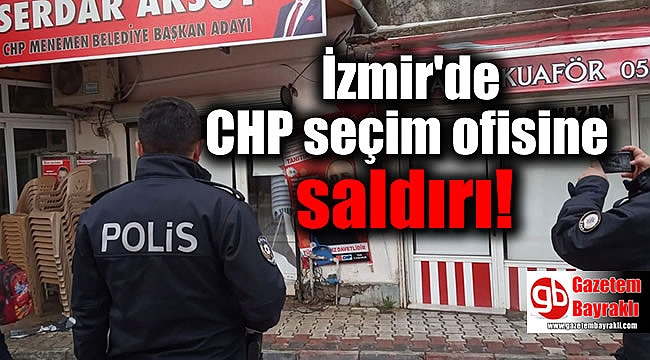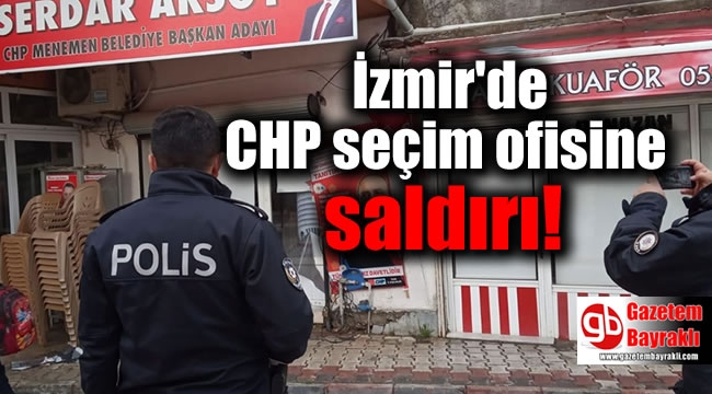 İzmir'in Menemen ilçesinde CHP’li Serdar Aksoy’un seçim ofisinin camları kırıldı.