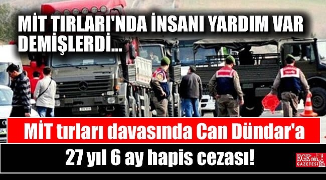 MİT tırlarının durdurulmasına ilişkin gizli kalması gereken belge ve fotoğrafları Cumhuriyet Gazetesi'nde Genel Yayın Yönetmeni olduğu dönemde yayımladığı gerekçesiyle yargılanan gazeteci Can Dündar "devletin güvenliğine ilişkin gizli kalması gereken bilgileri temin etmek ve açıklamak" suçundan 5 yıl 10 ay hapis cezasına çarptırılmıştı. Kararı bozan Yargıtay, Dündar hakkında "gizli kalması gereken bilgileri casusluk maksadıyla temin etmek" suçundan hüküm kurulması gerektiğine karar vermişti. Yargıtay'ın bozma kararının ardından İstanbul 14. Ağır Ceza Mahkemesi'nde yeniden görülmeye başlanan duruşmaya sanık Can Dündar ve katılan Türkiye Cumhuriyeti Cumhurbaşkanı Recep Tayyip Erdoğan'ın vekilleri katılmıştı.TIRLARDA NE VARDI KİMLERE GİDİYORDU?Polis raporuna göre, durdurulan tırlarda; tıbbi ilaçların altına gizlenmiş 1000 havan topu, 1000 havan topu mermisi, 50000 makineli tüfek mermisi ve 30000 ağır makineli tüfek mermisi bulunmaktaydı.