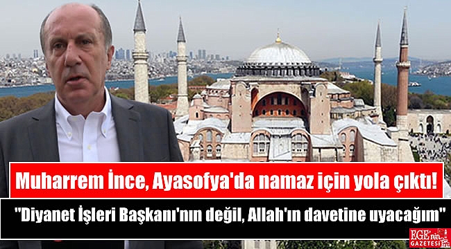 CHP'li Muharrem İnce Ayasoyfa'da kılınacak Cuma Namazına katılmak üzere İstanbul'a gitti. İHA'ya özel açıklamada bulunan İnce, "Diyanet İşleri Başkanı beni arayıp namaza davet etti. Ama ben Diyanet İşleri Başkanı'nın değil, Allah'ın davetine uyacağım" dedi