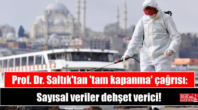 Ankara Üniversitesi Tıp Fakültesi Halk Sağlığı Anabilim Dalı öğretim üyesi Prof. Dr. Saltık, koronavirüs pandemisinin yayılımını azaltmak için bir aylık kapanmaya gidilmesi gerektiğini söyledi.nkara Üniversitesi Tıp Fakültesi Halk Sağlığı Anabilim Dalı öğretim üyesi Prof. Dr. Saltık, koronavirüs pandemisinin yayılımını azaltmak için bir aylık kapanmaya gidilmesi gerektiğini söyledi.Sözcü gazetesi yazarı Uğur Dündar'ın aktardığına göre Prof. Dr. Saltık, "Sayısal veriler dehşet vericidir. Salgın yönetiminde son derece başarısız bir tablo tartışmasız olarak ortadadır. Aynı yöntemler sürdürülerek farklı sonuçlar alınamaz" ifadelerini kullandı.Prof. Dr. Saltık 'salgına karşı derhal yapılması gerekenleri' şöyle sıraladı:-4 hafta boyunca yüzde 95'ler düzeyinde tam kapanmaya gidilmelidir.