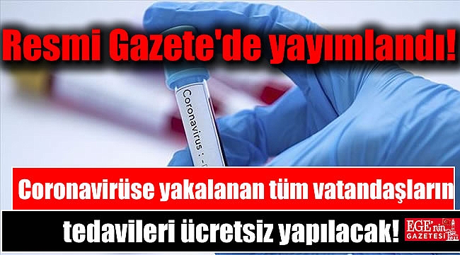 Resmi Gazete'de yayımlandı: Coronaviruse yakalanan tüm vatandaşların tedavileri ücretsiz yapılacak