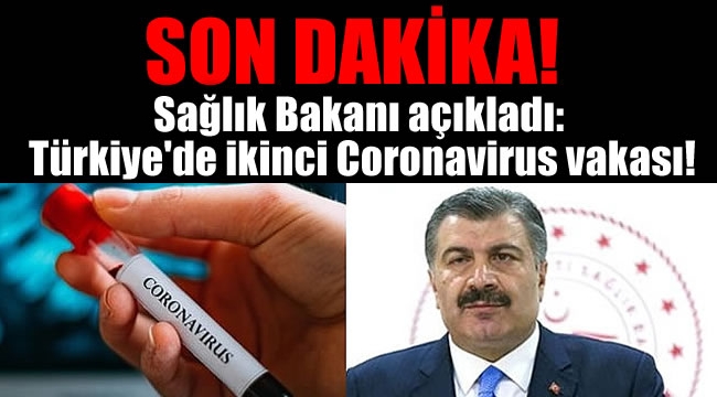Çin'in Vuhan kentinden dünyaya yayılan yeni tip Coronavirüs (Covid-19) Türkiye'ye de sıçradı. Geçtiğimiz gün Türkiye'de bir erkek hastada tespit edildiği duyurulan Kovid-19'un ikinci bir hastada da görüldüğünü yine Sağlık Bakanı Fahrettin Koca bizzat duyurdu.Sağlık Bakanı Koca, Türkiye'de ikinci Covid-19 vakası görüldüğünü "Dün akşam sonuçlanan test, üzücü bir öngörüyü doğruladı. Bir hastamız daha var" sözleriyle duyurdu.