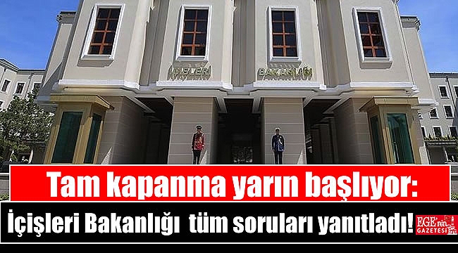 İçişleri Bakanlığı, koronavirüsle mücadele kapsamında 29 Nisan'da başlayıp 17 Mayıs'a kadar devam edecek "tam kapanma" sürecine ilişkin yayımlanan genelge konusunda sıkça sorulan soruları yanıtladı. Metinde; şehirler arası seyahat kısıtlamasından Anneler Günü'nde çiçekçilerin çalışma saatlerine, vakıf ve derneklerin çalışma faaliyetlerine kadar birçok alanda merak edilen konulara ilişkin açıklamalar yer aldı.Cumhurbaşkanı Erdoğan, pazartesi gerçekleşen Kabine toplantısı sonrası yaptığı açıklama ile Ramazan Bayramı'nı kapsayacak şekilde 3 hafta süre ile 29 Nisan Perşembe günü saat 19'dan itibaren başlayarak 17 Mayıs Pazartesi günü saat 5'e kadar ülke çapında tam kapanmaya geçildiğini açıkladı.Bu süreçte, İçişleri Bakanlığı genelgesinde belirtilen istisna kuruluşlar hariç, tüm iş yerlerinin faaliyetlerine ara vermesini kararlaştırıldı. Ancak vatandaşların kafasında oluşan karışıklıkları gidermek için İçişleri Bakanlığı, tam kapanmaya ilişkin bir açıklama yayınlayarak merak edilen soruların yanıtlarını paylaştı.