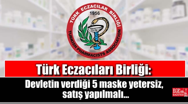 Türk Eczacıları Birliği: Devletin verdiği 5 maske yetersiz, satış yapılmalı