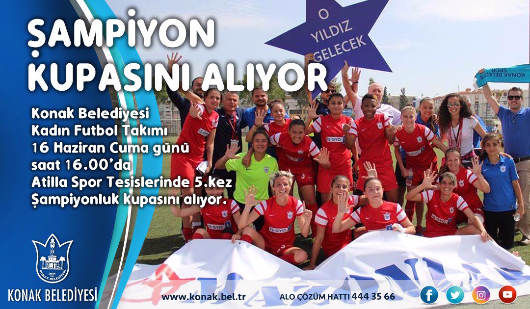 Türkiye Kadınlar Futbol 1'inci Ligi'ni  lider bitiren Konak Belediyespor Kadın Futbol Takımı, şampiyonluk kupasını Atilla Spor Tesisleri'nde 16 Haziran 2017'de düzenlenen törenle alacak. Onlar artık Türkiye'nin kadın futbolunda rakipsiz en iyileri!