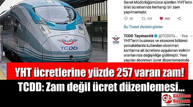 Yüksek hızlı trenlerin (YHT) bilet ücretlerine zam yapıldığı haberleri üzerine açıklama yapan TCDD Taşımacılık AŞ, yapılan zam değil, abonman ücret düzenlemesi olduğunu savundu.