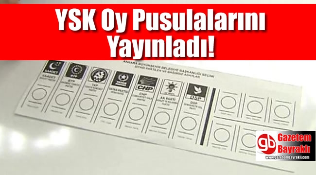 31 Mart Mart yerel seçimlerinde kullanılacak oy pusulaları basım sonrası ilk kez gösterildi.İşte Ankara seçimlerinde kullanılacak olan pusula:YSK yerel seçimlere katılacak siyasi partilerin birleşik oy pusulasındaki yerlerinin belirlenmesi için kura çekimini tamamlamıştı. 31 Mart'ta yapılacak yerel seçimlerde kullanılacak birleşik oy pusulasında AK Parti 8, CHP 7, MHP 10, İYİ Parti 11, HDP 12'nci sırada yer alacak.İŞTE PARTİLERİN PUSULADAKİ YERİ1. sırada Saadet Partisi2. sırada Bağımsız Türkiye Partisi3. sırada Türkiye Komünist Partisi (TKP)4. sırada Vatan Partisi5. sırada Büyük Birlik Partisi6. sırada Hür Dava Partisi7. sırada Cumhuriyet Halk Partisi (CHP)8. sırada Adalet ve Kalkınma Partisi9. sırada Demokrat Parti (DP)10. sırada Milliyetçi Hareket Partisi (MHP)11. sırada İYİ Parti12. sırada Halkların Demokratik Partisi (HDP)13. sırada Demokratik Sol Parti (DSP)